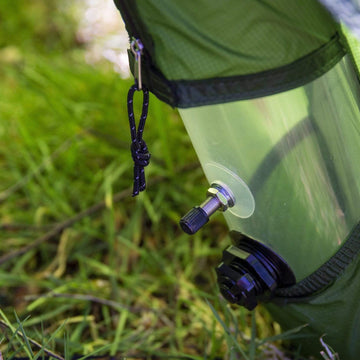 Home prep - you can prepare your tarp at home by threading your line through any ridge risers you may have on your tarp. Attach a clipper to one end of the line and tie a prussik knot about halfway along the line with another clipper attached to it (There are plenty of videos online showing this knot). Now pack your tarp into a stuff-bag trying to leave the 2 clippers hanging out the top for a swift set up.