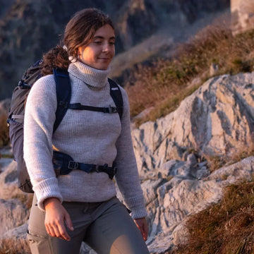 - Iona (Womens): Made in the UK from undyed British wool with a relaxed roll neck fit. Perfect for layering on winter walks and bothy nights. Like Pennine, it’s manufactured locally with minimal processing for a lighter environmental impact.